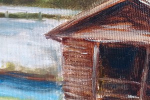 Olejomalba na plátně nalepeného na panel velikostí 39 × 29 cm.