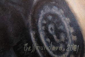 Olejomalba na plátně nalepeného na panel velikostí 52 × 39 cm.