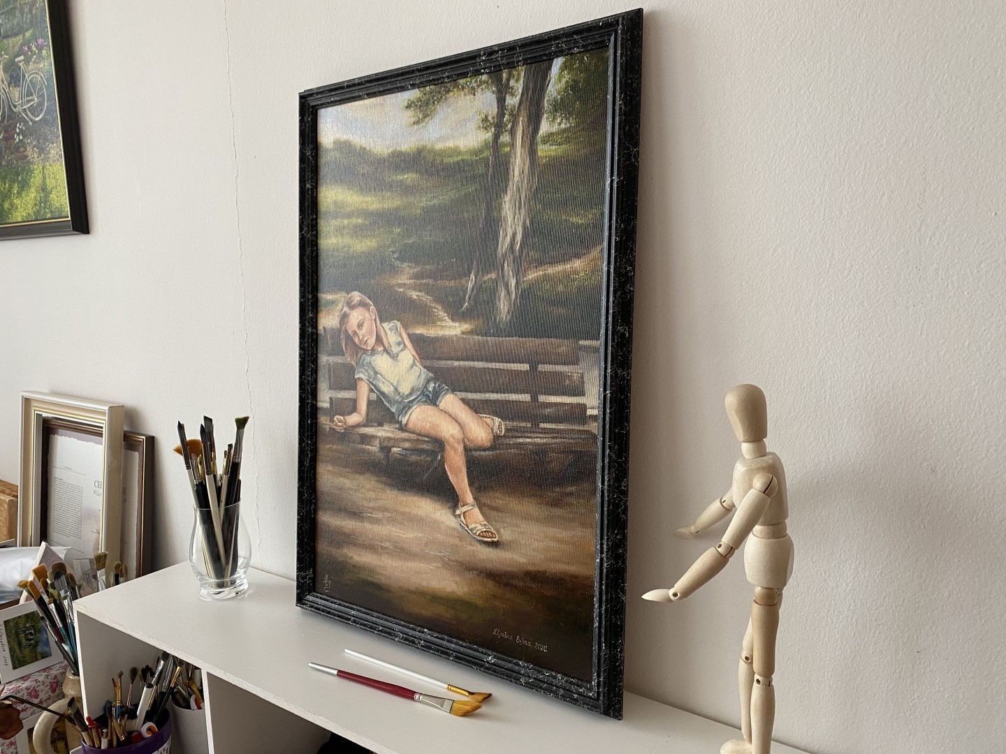 Ručně malovaný portrét na plátně "Unavená modelka" 39 × 59 cm