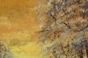Miniaturní olejomalba vyobrazuje romantický pohled na zapadající slunce v zasněžené krajině. Tato zimní krajina vyvolává pocit tepla v duší díky použité žluté barvy vyobrazující slunce. Vhodný k zavěšení na zeď v dětském pokoji nebo ložnici.