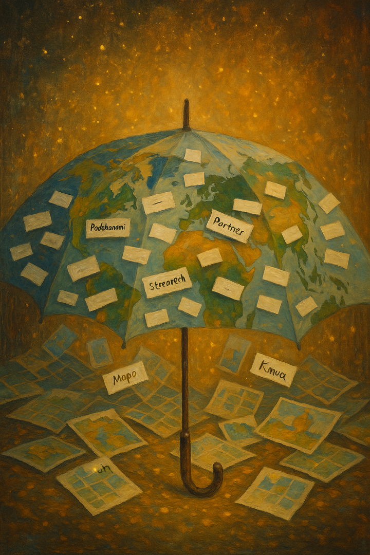 – Vaše jméno nebo přezdívka na art-objektech (mapy, deštník)